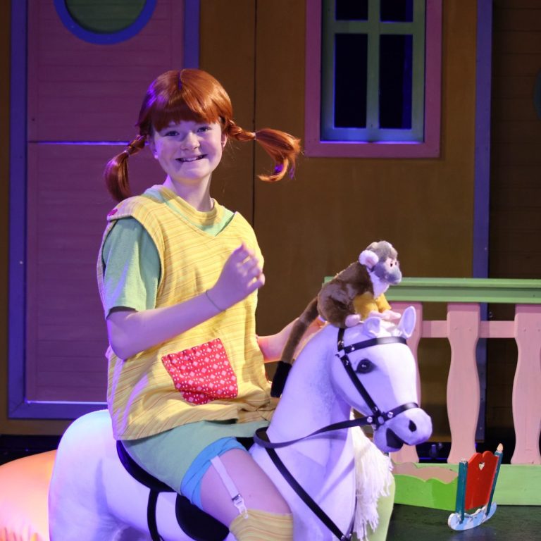 Die Handlung folgt im Kern den bekannten Pippi-Geschichten, ist aber deutlich als humorvolle, temporeiche und leicht aktualisierte Theaterfassung angelegt . Im Mittelpunkt steht Pippis unkonventionelles, freies Leben – und wie sie Erwachsene, Diebe, Maklerinnen und sogar Haie auf ihre ganz eigene, chaotisch-fröhliche Art „besiegt“.